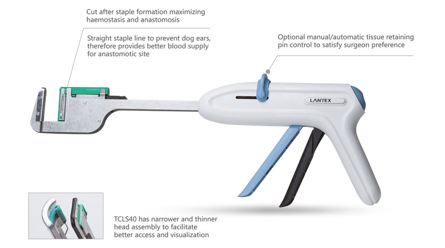 Der TCLS40 Single Use Linear Stapler mit Schneidefunktion zum Nachladen.